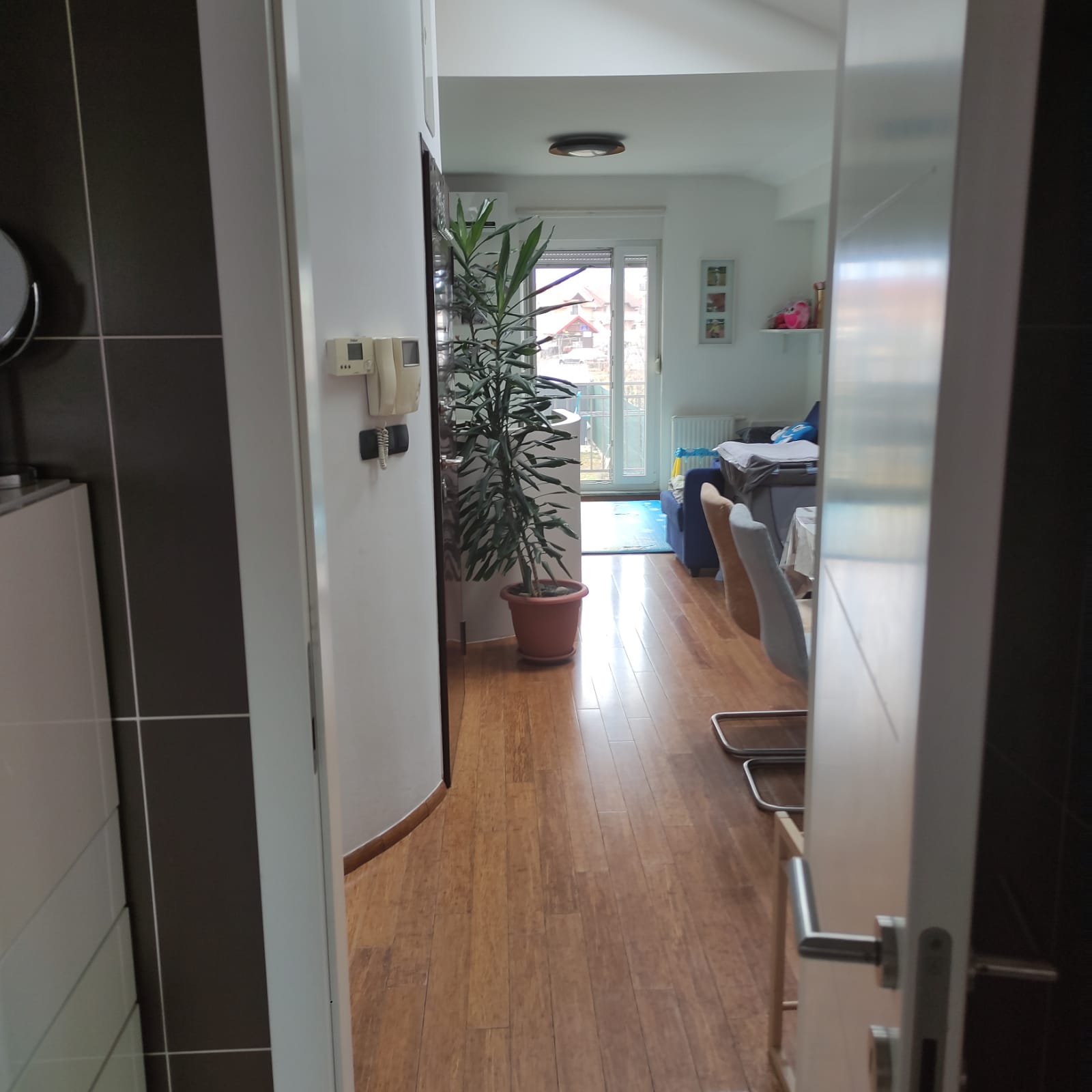 Lokacija stana je u Sesvetama, stari Jelkovec, neposredna blizina škole, vrtića, trgovina, busa, bazena. Miran dio okružen obiteljskim kućama. Orijentacija stana sjever i jug, stan ima puno svjetlosti.